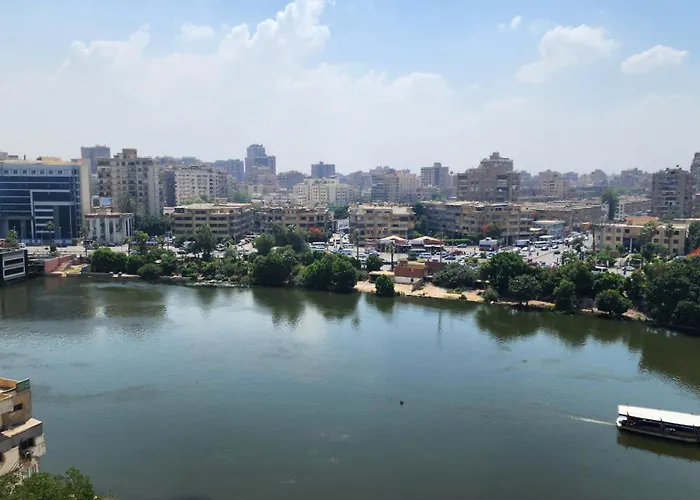The spacious Panoramic Nile-View In Zamalek - Rest From Chaos Apartment Cairo is located 2.8 km from the Lebanon Square and 10 minutes by car from the free - standing concrete Cairo Tower. Staying in this apartment, nestled a few moments from the El Sawy Culture Wheel, guests can relax on a sun terrace.